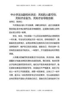 中小学法治副校长讲话:无知的人最可怕,无知才会妄为,无知才会导致悲剧.doc