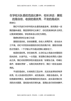 在学校大队委的竞选比赛中,校长讲话:展现的是自信,收获的是优秀,不变的是成长.doc