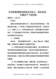 在学校教育教学经验交流会上,校长发言,主要讲了4块内容.doc