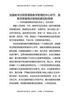 在学校教育教学经验交流会上,校长讲话:加强教学过程管理是教学管理的中心环节,是教学质量稳步提高的基础和保障。.docx