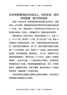 在学校管理经验交流会议上,校长发言:规范学校管理,提升学校品味.docx
