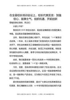 在全县校长培训会议上,校长代表发言:加强信心,鼓舞士气,抢抓机遇,开拓创新.doc
