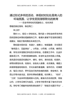 在全市学校校风观摩会上,校长讲话:通过形式多样的活动,体现时时处处是育人的环境氛围,让学生受到潜移默化的教育.doc