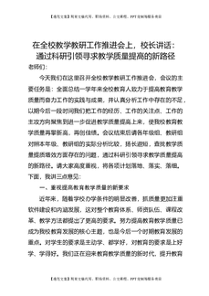 在全校教学教研工作推进会上,校长讲话:通过科研引领寻求教学质量提高的新路径.doc