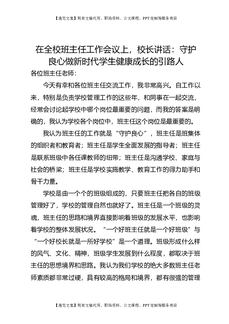 在全校班主任工作会议上,校长讲话:守护良心做新时代学生健康成长的引路人.doc