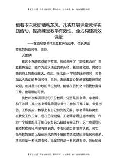 在四校联合体主题教研活动中,校长讲话:借着本次教研活动东风,扎实开展课堂教学实践活动,提高课堂教学有效性,全力构建高效课堂.doc