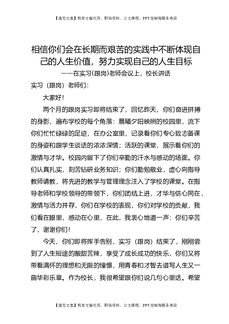 在实习(跟岗)老师会议上,校长讲话:相信你们会在长期而艰苦的实践中不断体现自己的人生价值,努力实现自己的人生目标.doc