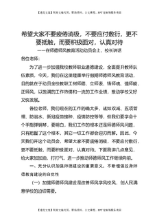 在师德师风教育活动动员会上,校长讲话:希望大家不要疲倦消极,不要应付敷衍,更不要抵触,而要积极面对,认真对待.doc