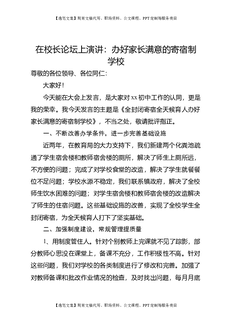 在校长论坛上演讲:办好家长满意的寄宿制学校.doc