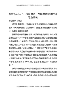 在校长论坛上,校长讲话:发展教师促进教师专业成长.doc