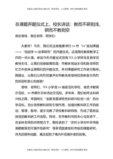 在课题开题仪式上,校长讲话:教而不研则浅,研而不教则空.doc