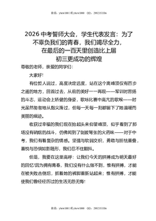 2026中考誓师大会,学生代表发言:为了不辜负我们的青春,我们竭尽全力,在最后的一百天里创造比上届初三更成功的辉煌.docx