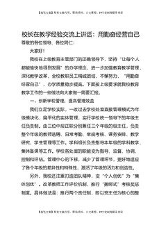 校长在教学经验交流上讲话:用勤奋经营自己.doc
