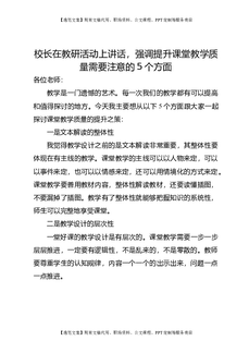 校长在教研活动上讲话,强调提升课堂教学质量需要注意的5个方面.doc