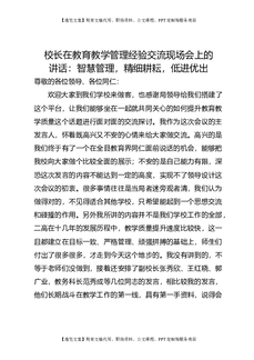 校长在教育教学管理经验交流现场会上的讲话:智慧管理,精细耕耘,低进优出.doc
