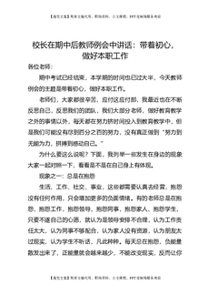 校长在期中后教师例会中讲话:带着初心,做好本职工作.doc