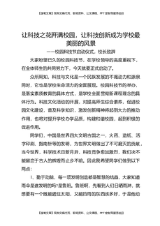 校园科技节启动仪式,校长致辞:让科技之花开满校园,让科技创新成为学校最美丽的风景.docx