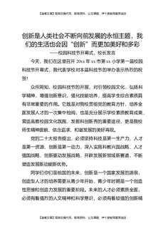 校园科技节开幕式,校长发言:创新是人类社会不断向前发展的永恒主题,我们的生活也会因“创新”而更加美好和多彩.docx
