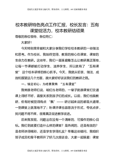 校本教研特色亮点工作汇报,校长发言:五有课堂绽活力,校本教研结硕果.docx