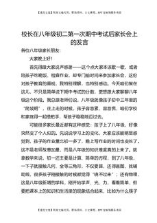 校长在八年级初二第一次期中考试后家长会上的发言.doc