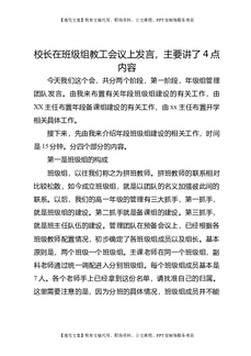 校长在班级组教工会议上发言,主要讲了4点内容.doc