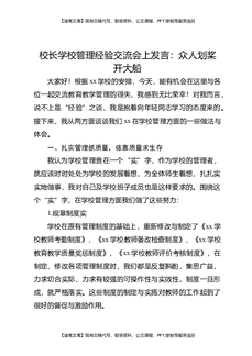 校长学校管理经验交流会上发言:众人划桨开大船.docx
