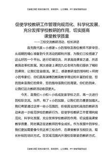 三校交流教研活动,校长讲话:促使学校教研工作管理向规范化、科学化发展,充分发挥学校教研的作用,切实提高课堂教学质量.docx