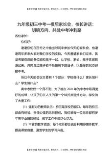 九年级初三中考一模后家长会,校长讲话:明确方向,共赴中考冲刺路.doc