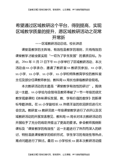 区域教研活动总结,校长讲话:希望通过区域教研这个平台,得到提高,实现区域教学质量的提升,愿区域教研活动之花常开常新.docx