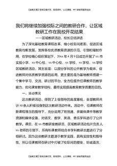 区域教研活动,校长总结讲话:我们将继续加强校际之间的教研合作,让区域教研工作在我校开花结果.docx