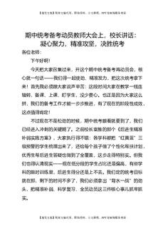 期中统考备考动员教师大会上,校长讲话:凝心聚力,精准攻坚,决胜统考.doc