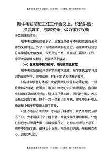 期中考试前班主任工作会议上,校长讲话:抓实复习、筑牢安全、做好家校联动.doc