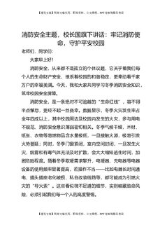 消防安全主题,校长国旗下讲话:牢记消防使命,守护平安校园.doc