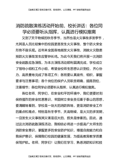 消防疏散演练活动开始前,校长讲话:各位同学必须要听从指挥,认真进行模拟撤离.docx