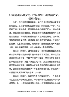 经典诵读启动仪式,校长致辞:读经典之文,做有根的人.docx