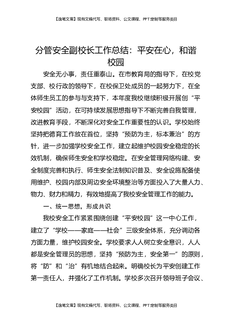 分管安全副校长工作总结:平安在心,和谐校园.docx