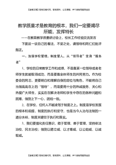 在教育教学质量研讨会上,校长工作经验交流发言:教学质量才是教育的根本,我们一定要竭尽所能,发挥特长.docx