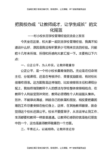 村小校长在学校管理经验交流会上发言:把我校办成“让教师成才,让学生成长”的文化摇篮.docx