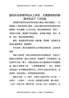 副校长在新教师会议上讲话,主要围绕如何教育学生谈了7点内容.docx