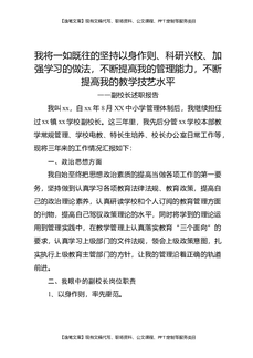 副校长述职报告:我将一如既往的坚持以身作则、科研兴校、加强学习的做法,不断提高我的管理能力,不断提高我的教学技艺水平.docx