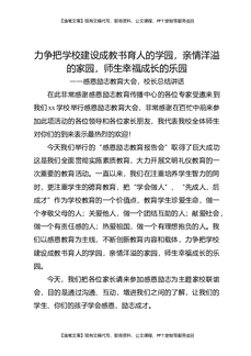 感恩励志教育大会,校长总结讲话:力争把学校建设成教书育人的学园,亲情洋溢的家园,师生幸福成长的乐园.docx