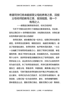 感恩励志教育报告会后,校长总结讲话:希望同学们将来能报答父母的养育之恩、回报父母老师的教导之恩,报效祖国,做一个有用之人.docx