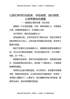 感恩励志演讲比赛,校长讲话:让我们共同行动起来,学会感恩,践行感恩,让世界更加充满爱.docx