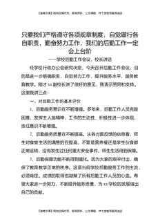 学校后勤工作会议,校长讲话:只要我们严格遵守各项规章制度,自觉履行各自职责,勤奋努力工作,我们的后勤工作一定会上台阶.docx