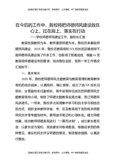 学校师德师风建设工作,副校长汇报:在今后的工作中,我校将把师德师风建设放在心上,扛在肩上,落实在行动.docx