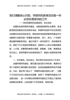 学校师德师风自查报告,校长讲话:我们清醒地认识到,师德师风教育活动是一件必须长期坚持的工作.docx