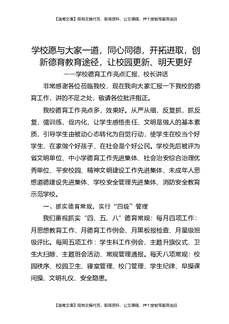 学校德育工作亮点汇报,校长讲话:学校愿与大家一道,同心同德,开拓进取,创新德育教育途径,让校园更新、明天更好.docx