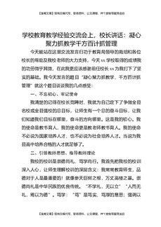 学校教育教学经验交流会上,校长讲话:凝心聚力抓教学千方百计抓管理.docx