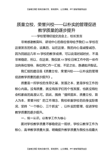 学校管理经验交流会上,校长发言:质量立校,荣誉兴校——以朴实的管理促进教学质量的逐步提升.docx