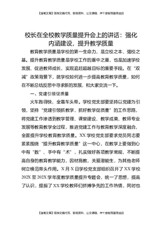 校长在全校教学质量提升会上的讲话:强化内涵建设,提升教学质量.docx